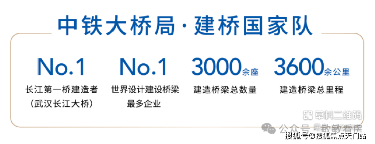中铁大桥局集团前身为1953年修建万里长江第一桥“武汉长江大桥”经政务院批准成立的铁道部大桥局,是中国桥梁事业的领军者,是世界上设计桥梁最多的企业,中国“一带一路”走向世界的“建桥国家队”。在世界范围内建造桥梁总数超过3000 座,建造桥梁总里程超过3600余公里,建桥技术国际领先。近70年来,公司曾先后参与建设了杭州湾跨海大桥、东海大桥、港珠澳大桥、武汉长江大桥、南京长江大桥等一系列知名桥梁,一直引领着中国桥梁事业发展方向,以建桥的心志去建造住宅。