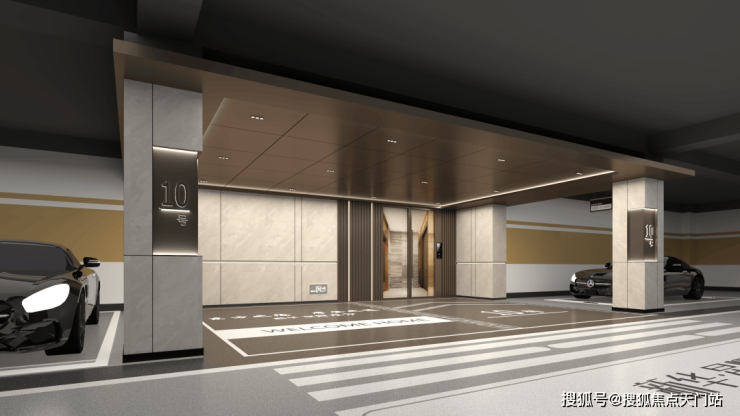 入口对行人、机动车进行优化分流,保障业主安全;而地面停车位,方便参观者、业主等临时停车的需求。另外在车库上,项目还打破了常规地库的单调、晦暗。直接将豪车专属的星空顶搬入了地库里。从车行驶入地库的那一刻开始,一场名为“宏大”的归家之旅就开始了。通道入口,顶部优雅的星空放射灯,展现出浩瀚星空般的深邃、璀璨,搭配两侧的高级铺面材质,尽显奢华气质。