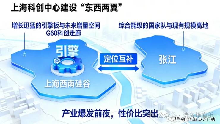 从城市大操盘底层逻辑来看,两者 定位互补, 洞泾&张江共同构成上海科创中心建设的“东西两翼”,因此无论是在规划高度,还是能级潜力, 洞泾的超级能量都足以并肩张江。 G60引擎,定义上海西南“硅谷”,这里正处产业爆发前夜,性价比突出!