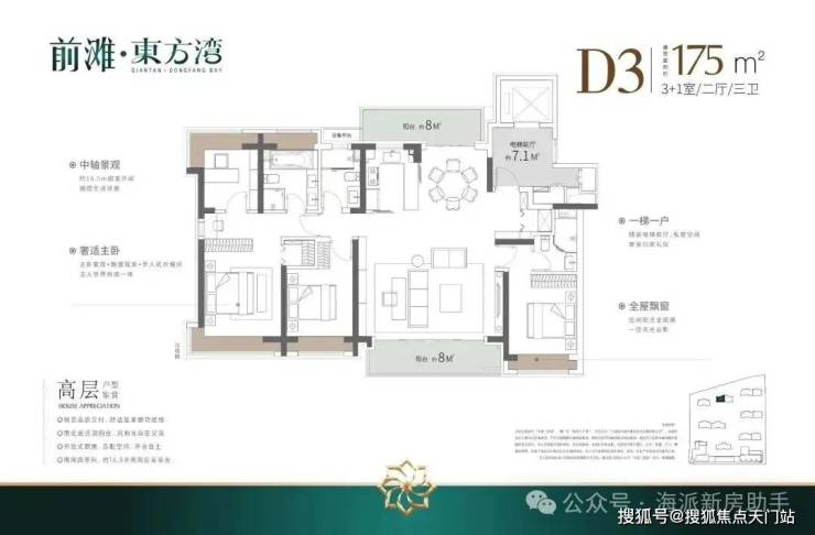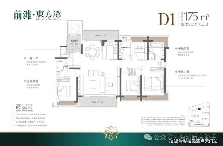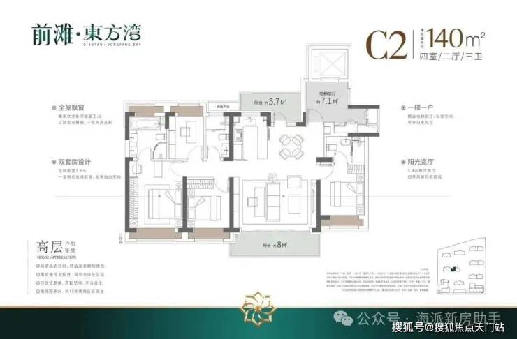 ④产品升级: 全铝板立面+带恒温泳池会所+全部(类)1梯1户+标准层高3.1-3.15米,适配高端改善人群居住。
