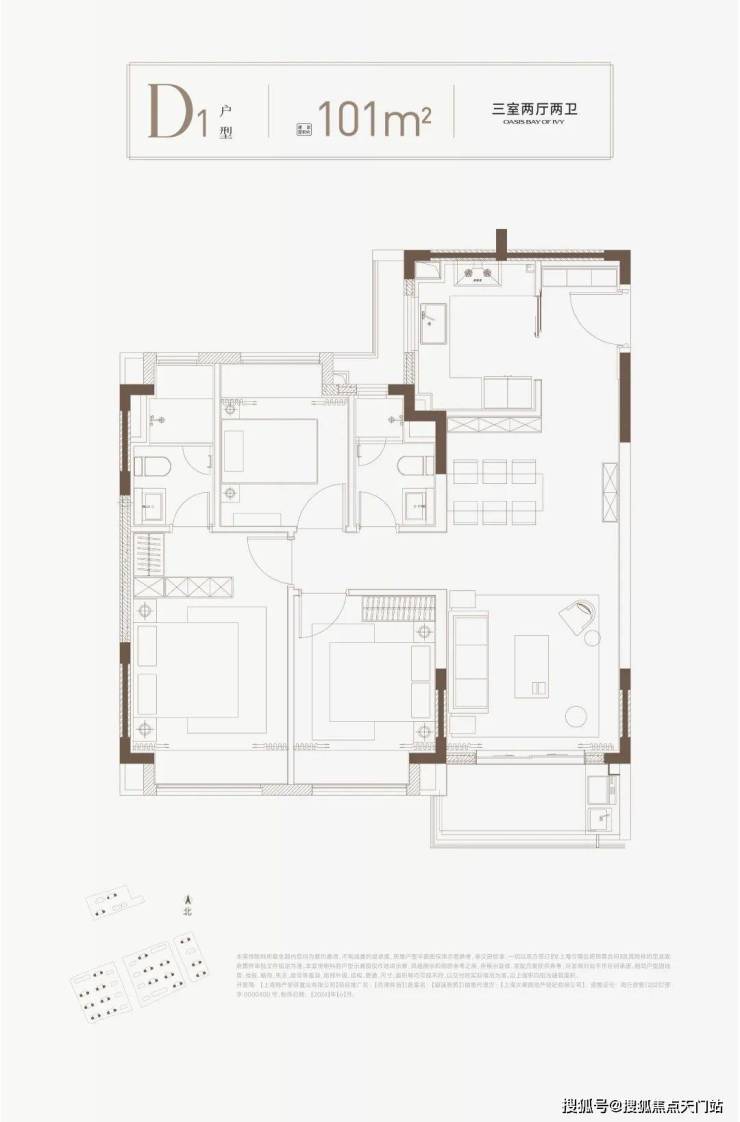 建面约100/101㎡的3房2厅2卫