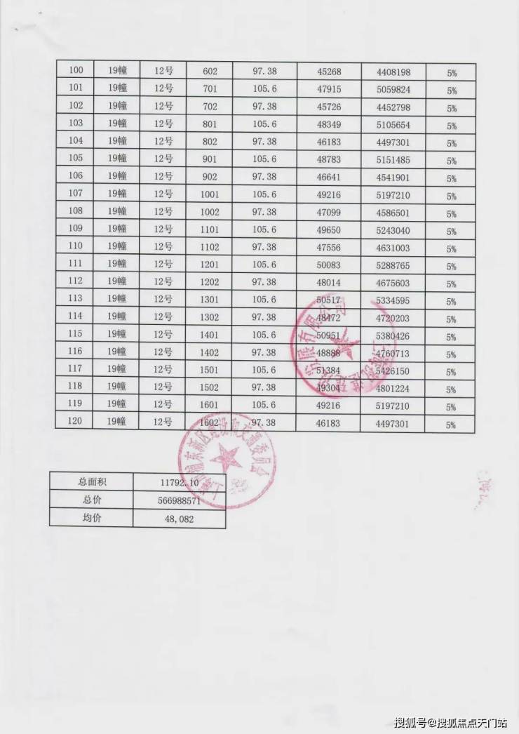 一房一价表: