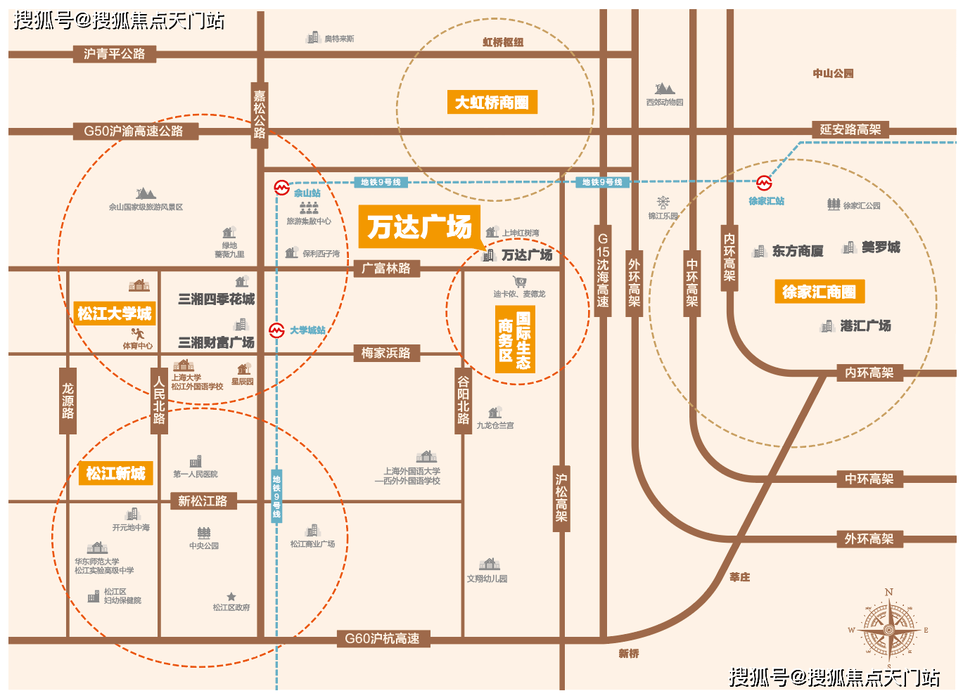 生活:松江区中山幼儿园、万达广场、松江大学城