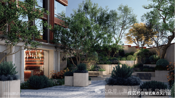 植物搭配上尽显巧思:油橄榄、铁冬青等带着南法风情的植物错落分布,各类花卉四季轮换绽放,春有繁花、夏有浓荫、秋有彩叶、冬有绿意,每一季都有不同的风景。材质选择上更是不吝成本:地面与墙面铺陈世茂金麻、贝金米黄等进口石材,业主可休憩的座位还选用稀缺的奥巴马木奢石,精选整块石材大面积通铺,纹理色泽犹如木材般自然温润;水景采用独特的波浪石材设计,水流淌过时灵动婉转,宛如自然馈赠的景致。更贴心的是社区地面的抬高设计,既有效隔绝了外界噪音与路人视线,保障居住私密性,又让景观更具层次感,置身其中则宛如繁华都市里的隐秘庄园,每一次下楼散步,都是与自然的温柔邂逅。