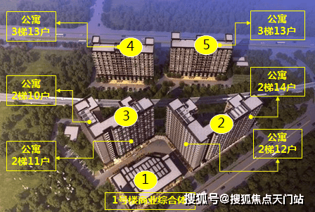 规划共5栋楼,1号楼为商业综合体,2-5号楼为酒店式公寓。2、3号楼总高16层,2号楼东南面为2梯14户,西南面为2梯12户,3号楼东南面2梯11户,西南面2梯10户;4、5号楼总高12层,设计为3梯13户,共计1069户。