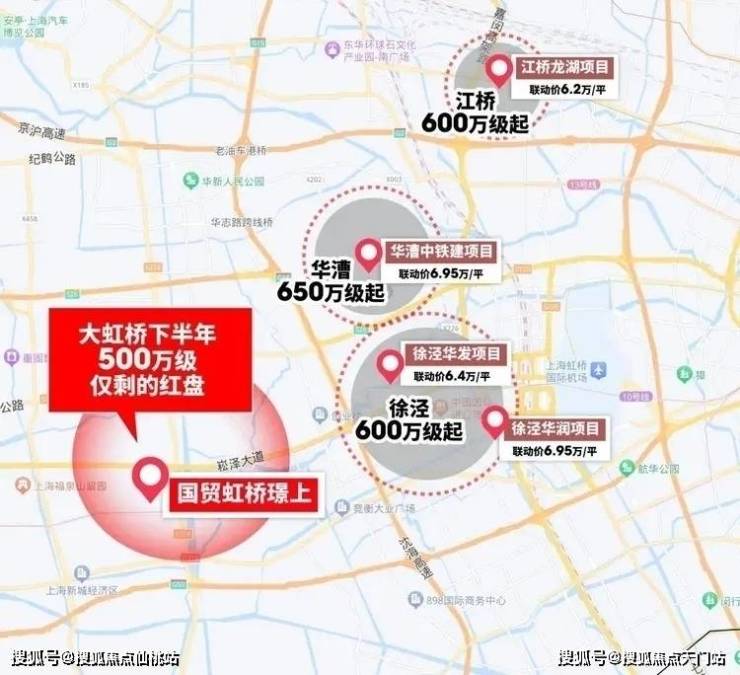 放眼下半年,大虹桥徐泾联动价6.4-6.95万/㎡,江桥联动价6.2万/㎡,南翔联动价6.25万/㎡,华漕联动价6.95万/㎡, 大虹桥将几乎全线破“6”,起步600万级。