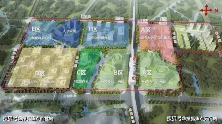 市西软件园核心位置就在嘉松中路站两侧,这里正打造 漕河泾赵巷科技绿洲,一共六个地块。