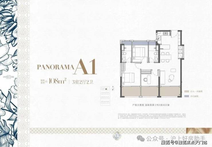 约108㎡户型:三开间朝南阳台,上海中环绝版配置!彻底粉碎百平三房“牺牲舒适换功能”的魔咒:南向次卧原本稍显局促的空间,因南向阳台的拓展实现质的飞跃,轻松容纳1.8米大床及床头柜,舒适度倍增。