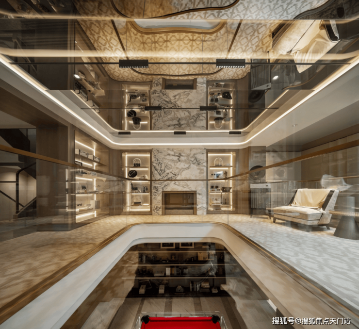 以建筑面积约150㎡的精装下叠为例,首层配备约7.2 米的巨幕横厅,与诗意园境无缝贯通,灵活实用。二层部分客厅区域挑空,可根据家庭需求灵活改造。更为惊喜的轩阔地下室(毛坯交付),层高可达 5.65 米,可打造成酒窖、健身房、书吧、私人影院等多元功能的“志趣博物馆”,满足个性化的生活需求。