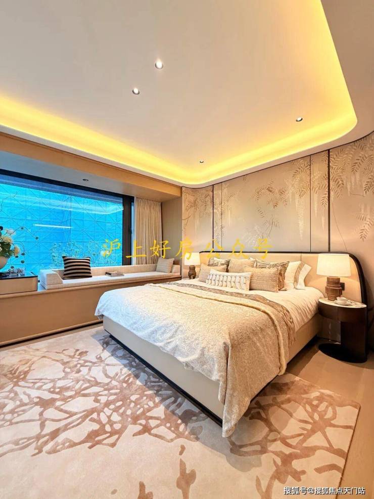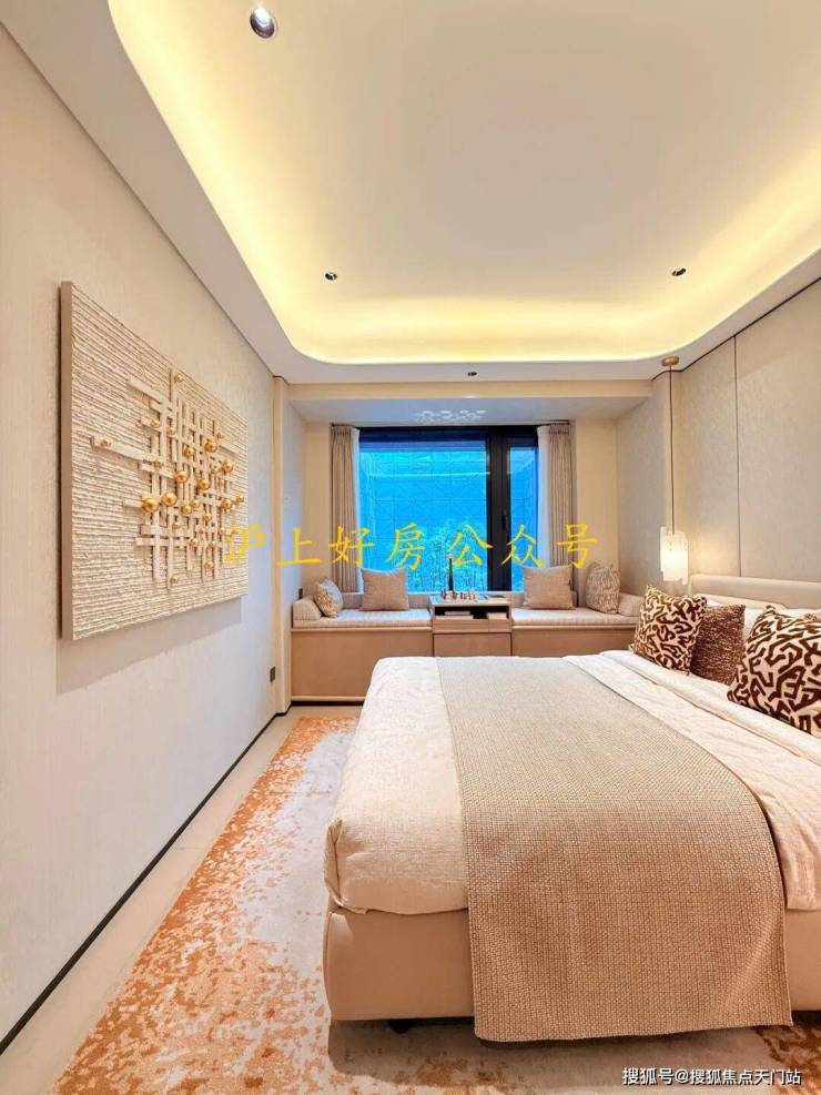 主卧拥有270度环幕飘窗,视野和采光优越,配备了高奢卫生间,空间感、尊崇感拉到顶格。