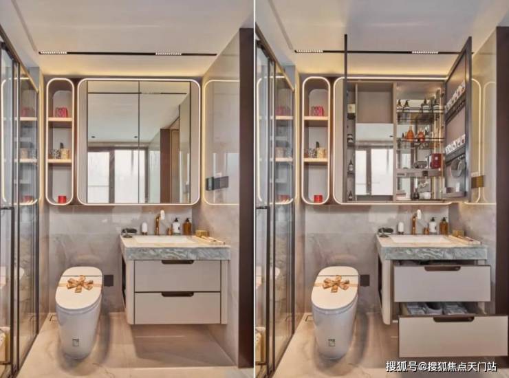 保利天奕特别关注到女性的生活需求,专门在卫生间配备了 科勒美颜龙头、美妆镜柜、美妆冰箱,采用“ 顶+面双补光照明”,能把“女本位”需求做到如此细致,目前没有几个项目能做到!