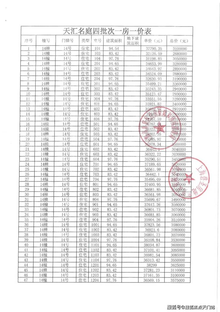 上期一房一价表发布: