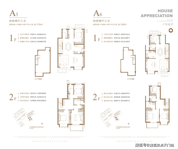 下叠户型,共有三个主力户型,建面约155、163、176㎡下叠。
