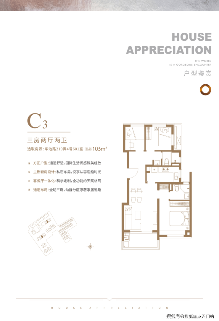 高层产品,包括建面约103-106平3房2厅2卫户型,几个主力户型做的非常不错,迎合了不同需求的购房群体。