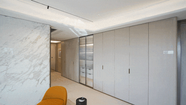 另外,因为豪宅客户对于精装美学有自己的审美,所以此次项目提供了超越行业的 三大柔性定制 ——艺术家联名定制入户门把手、艺术家联名定制艺术门牌挂画以及墙面饰面&岛台等区域提供多款石材/岩板款式。