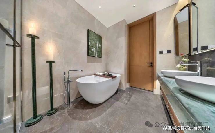套房式主卧,从起居室到衣帽间,独立卫浴间层层递进,关上房门就是主人的“小世界”。试想一下这场画面:回到家,浴缸里的热水已经放好,于是卸掉一身疲惫,让水温与身体融为一体,闭上眼睛,静静地享受泡浴带来的无限舒适。