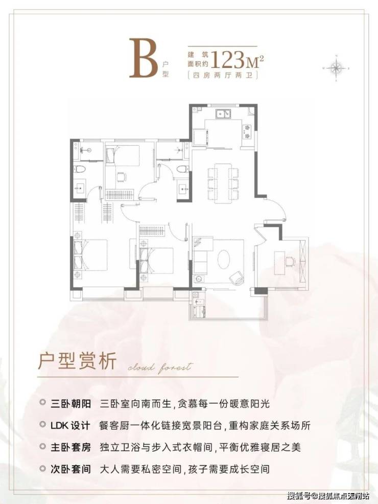 B户型建面约125㎡4房