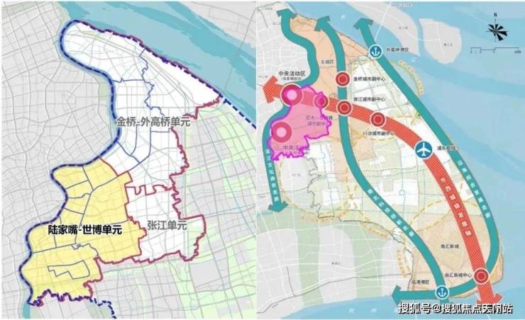 陆家嘴-世博单元包括陆家嘴和世博-前滩,这两块属于上海的中央活动区,还包括花木-龙阳路城市副中心,以及洋泾、北蔡、三林等热点地区。