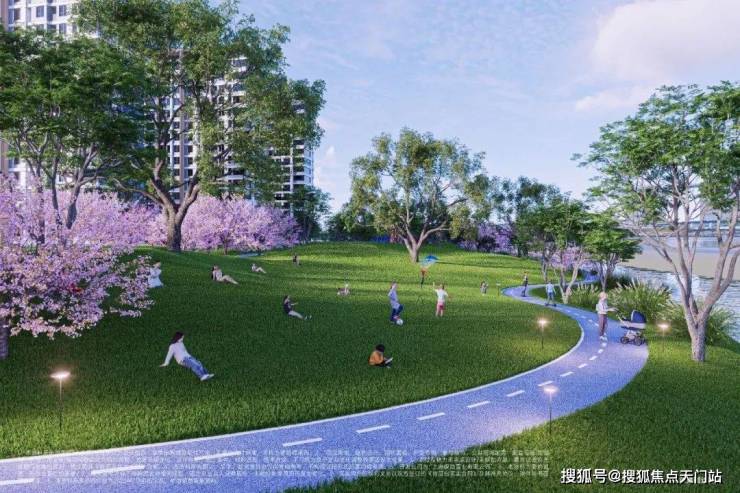 国际先进公园住区:向城市让渡一些开放空间,以前街后河、 约12000m滨水公园(代建)等一体化柔性边界,打造「外揽城市绿肺,内藏森境天地」公园住区,让繁华都市与静谧生活自然过渡。