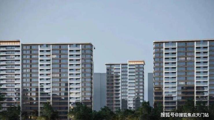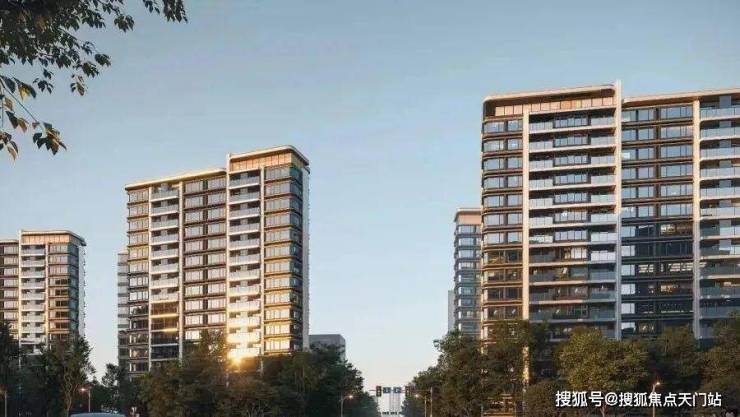 蓝灰色玻璃+仿石铝板+艺术涂料材质,穿插优雅线条,让建筑这张“脸”看起来更高级。One&Only酒店式门头。用雕塑体块、温润弧面和雅致线条,营造具有艺术格调的归家仪式感。