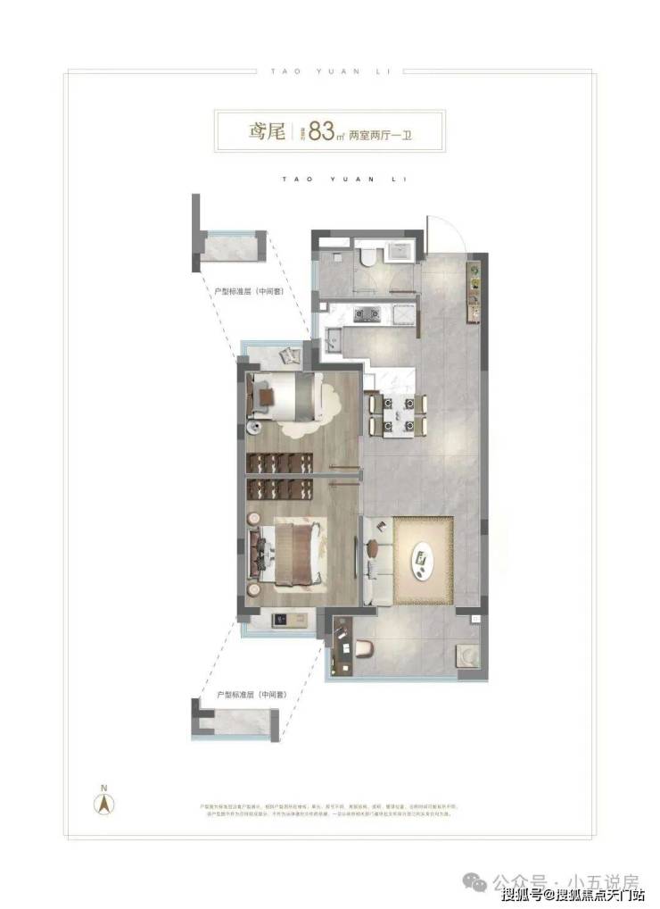 ✔建面约83㎡2房,是市场罕见的“入门级豪宅”,也是难得的装修高达约4000元/㎡的小户型。
