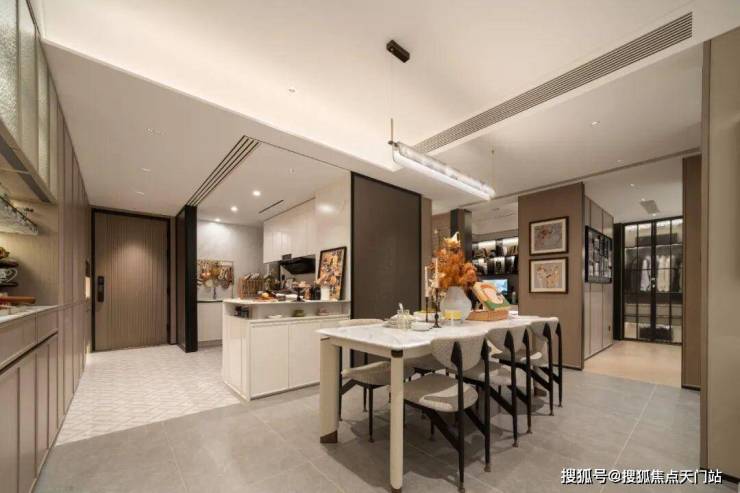 此外,室内还大量运用雅士白大理石、大花白岩板、皇家孔雀岩板、水纹夹丝玻璃、仿洞石岩板、卡拉卡塔白岩板、灰色皮革等定制材质,以华润置地独有的“五奢体系”,彰显着对高品质生活的极致追求。