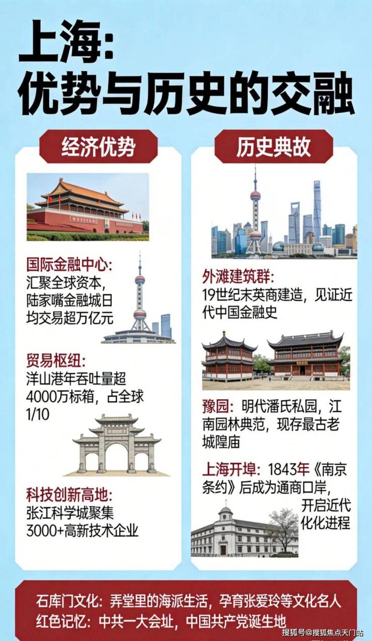 从先秦时期的先民聚居,到唐宋时期的商贸兴起;从明清时期的纺织繁荣,到近代以来的开埠通商;从新中国成立后的稳步发展,到改革开放以来的崛起腾飞,上海的每一步发展,都离不开其独特的发展优势,也都留下了经典的历史典故。这些优势与典故,相互融合、相互赋能,共同铸就了上海的辉煌,也为上海的未来发展奠定了坚实的基础。