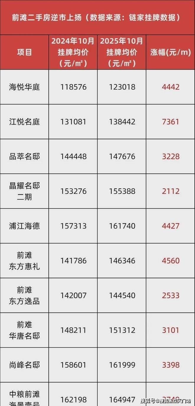 前滩滨江,正持续吸引全球眼光与资本,高净值人群正以实际行动在此“投票”。在2025年,整个前滩滨江范围里,二手房逆势上扬,数据显示,成交量已经突破200套,仅次于2020年最高点!就在11月,前滩东方逸品成交1套房源,成交单价来到了14.14万,同比上涨!