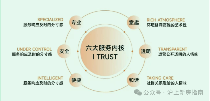 保利物业将品质服务品牌"亲情合院"深度融入日常生活,以"让家更暖"初心理念,围绕真、善、美、和四大维度,在社区落地呈现" I TRUST "六大服务体系,打造有生命的空间,有温情的社区,有质感的生活。