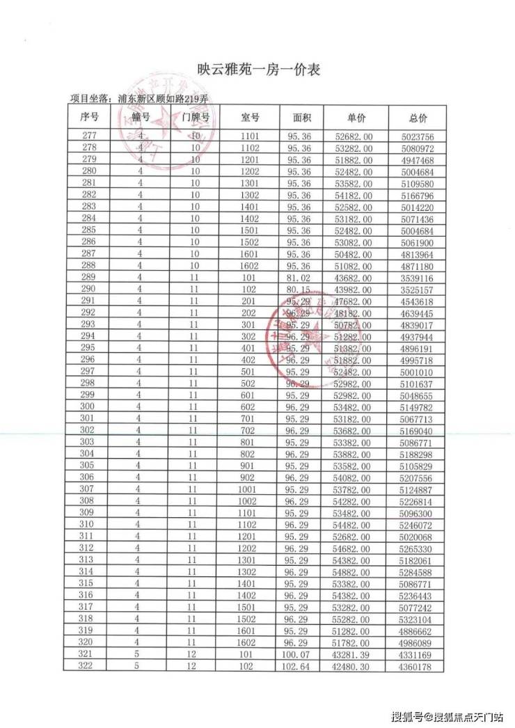 一房一价表