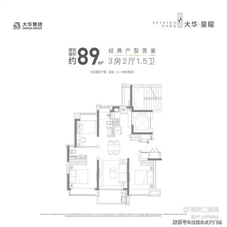89㎡的紧凑型3房,但这个户型还是有空间做了一个1.5卫的设计,保证了主人的私密空间,也避免了早高峰用厕的尴尬。