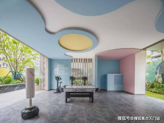 社区内还有三大复合功能架空层空间,包括会客休闲、儿童活动、轻氧健身,能够让家庭成员在不同场所自得其乐。