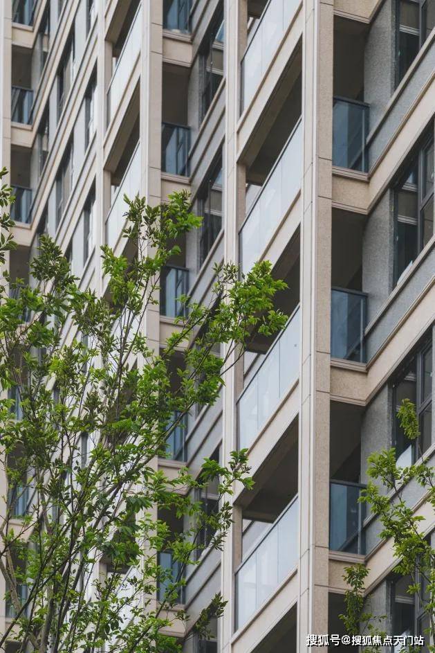 外立面整体形制优雅端正,时尚轻盈,简约有力,横向和竖向金属线条搭配。以简洁现代的线条表达立面感,加上对称的美学,使得建筑整体有着十足的现代感。同时,更大的窗墙比,让每一户的采光都能保持更佳。