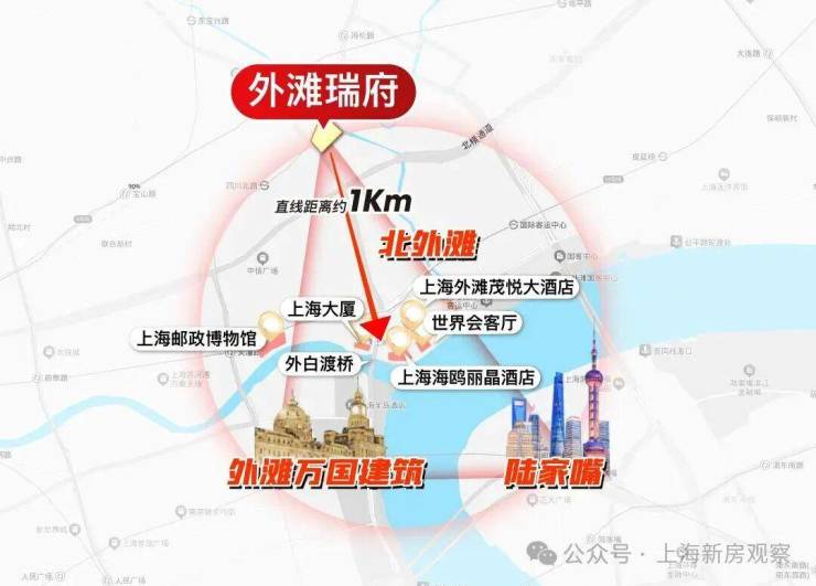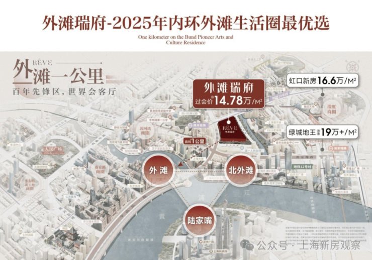 外滩瑞府,地处上海内环最“根正苗红” 的位置 —— 外滩1 公里生活圈。如果说内环是上海豪宅的 “第一梯队”,那外滩板块就是 “内环中的内环”。