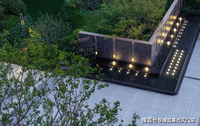 入口的迎宾水景设计,水幕与绿意相映成趣,让喧嚣止步于门外,心绪随潺潺水声归于宁静。金属线条勾勒出流动的轮廓,光影流转间交织出归家的尊崇礼序。