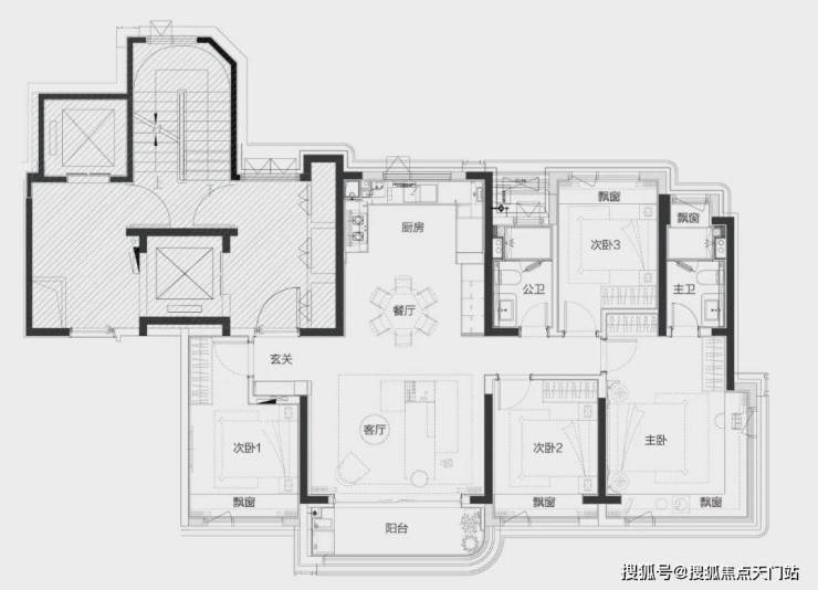 全屋5个飘窗,进一步拓展空间的实用功能!