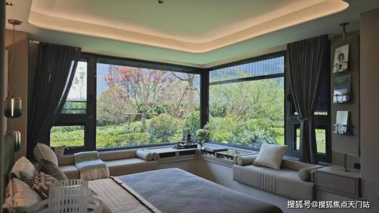 巨幕 “曲面屏”阳台!搭配落地玻璃窗,将室外绿色美景尽收眼底,几乎实现南向阳台“墙体消失术”!