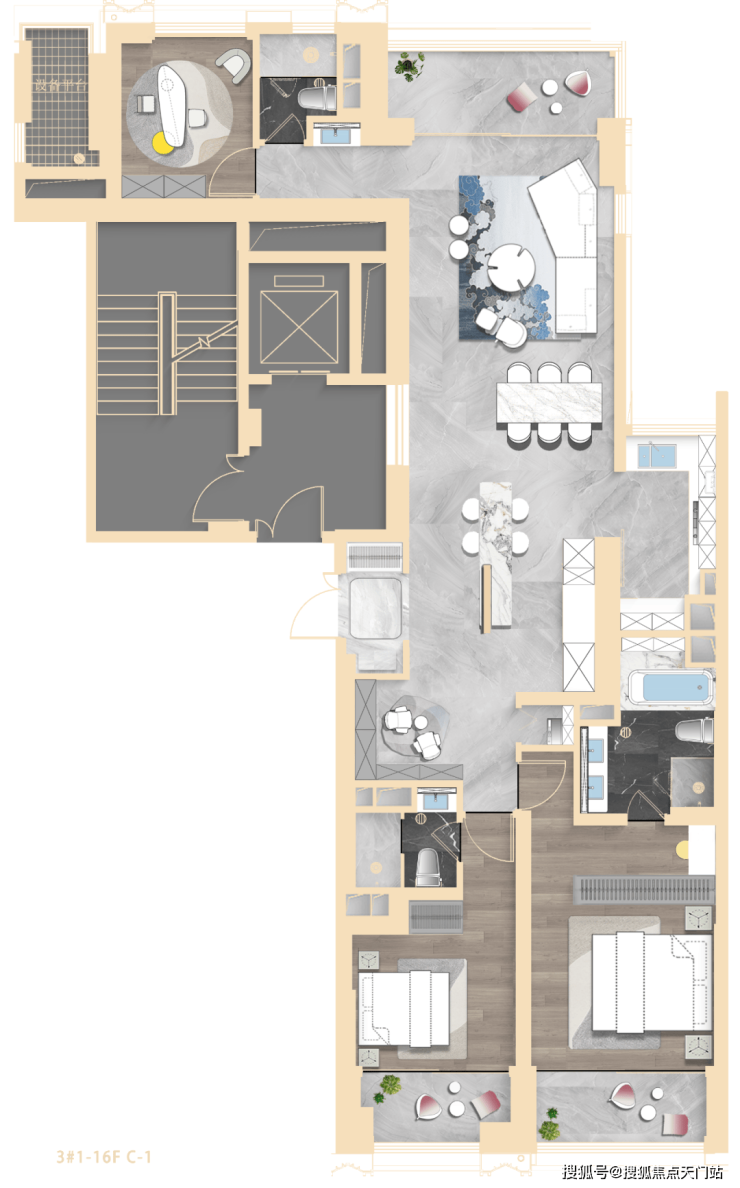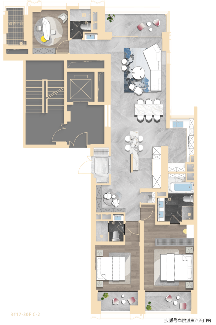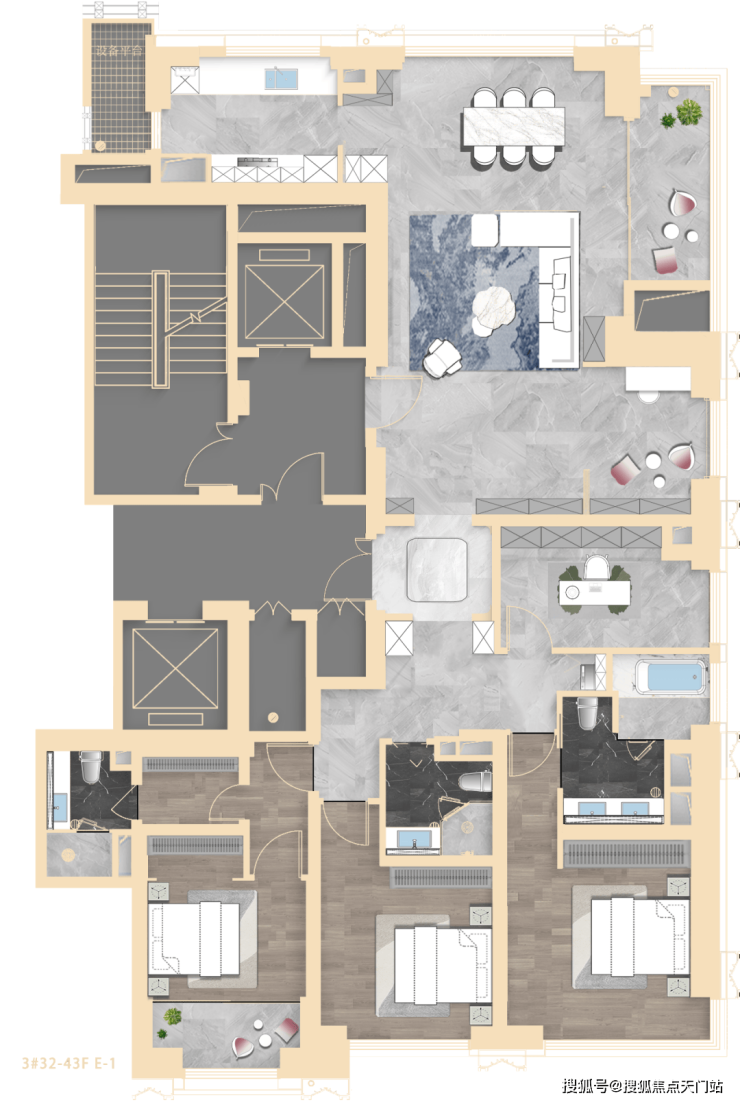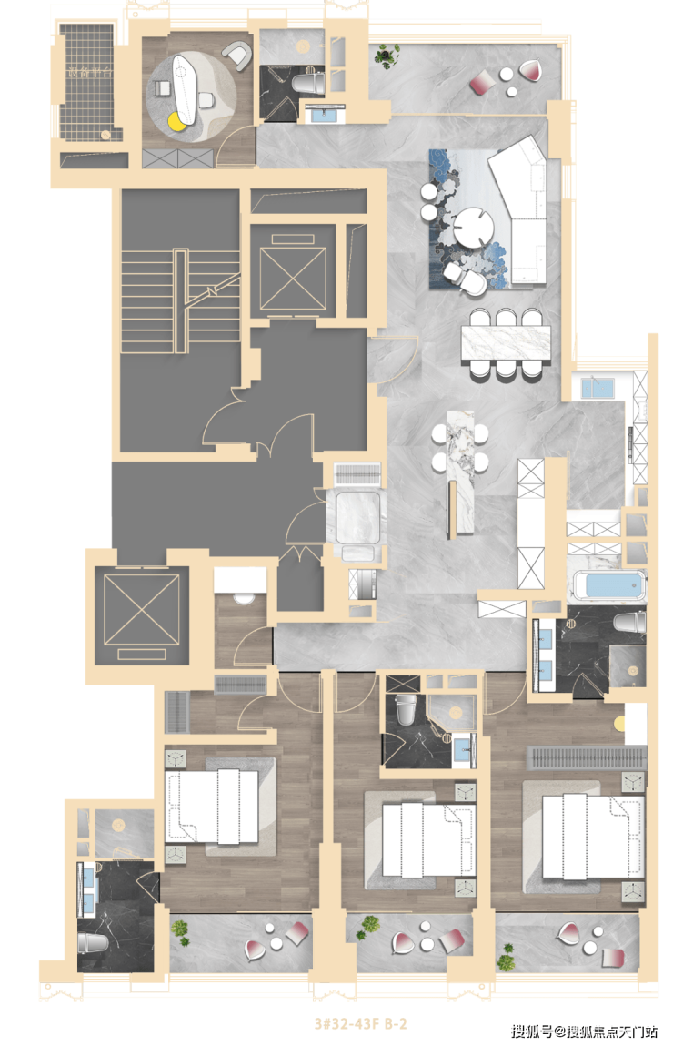 其中3#为超高层,北向可观小区绿化和苏河景观,高区可瞰三件套盛景。