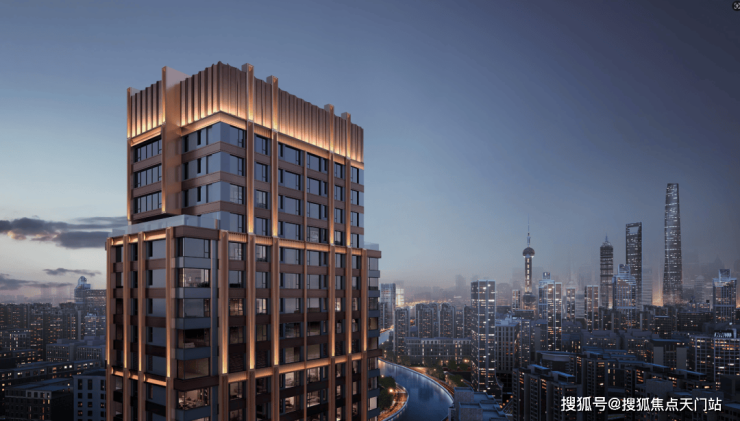 观家新房注意到,在外立面上,项目与外滩万国建筑博览群的建筑风格一脉相承,为ARTDECO风格,三段式立面,塑造出有立体感的韵律天际线。材质方面不计成本采用古铜色、深灰色+铝板、镜面铝板的完美搭配,再镶嵌竖向线条和立面层次,威仪肃穆。