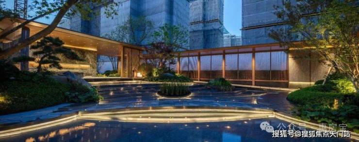 聆星客厅前方种植了松界王者—— 日本黑松,约4000万+的顶豪融创外滩壹号院的社区内,也有一颗同款;