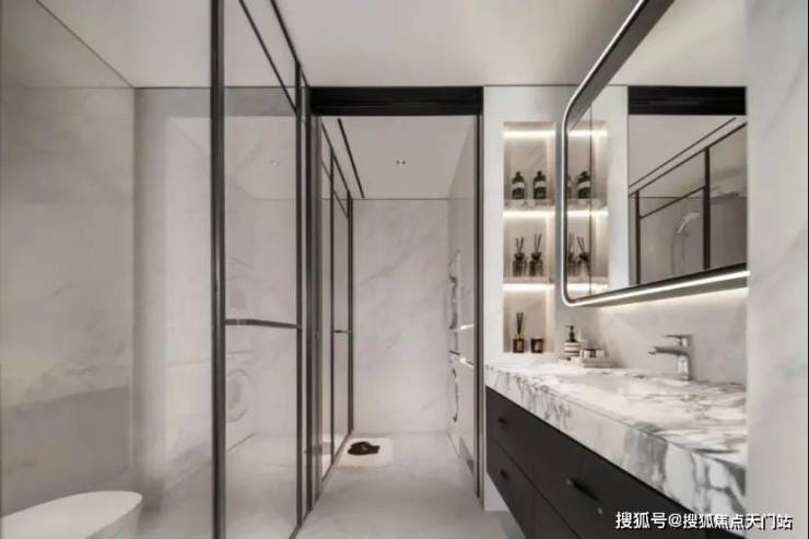 酒店式四分离公卫: 实现独立洗漱台、卫生间、淋浴间、洗衣区互不打扰,将酒店化体验引入住宅,早高峰时期也能做到出入有序。