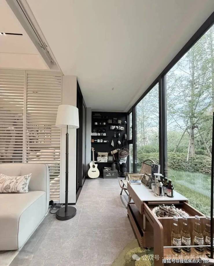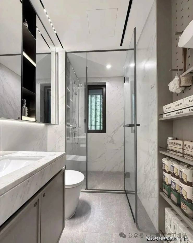此外,像私享的入户梯厅可以做家庭小型储藏库;沙发后面的空间可以摆放大体量壁柜;大面宽阳台两侧也可作为定制储藏空间;