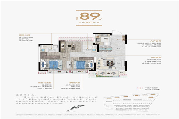 建面约89㎡ 3房2厅2卫