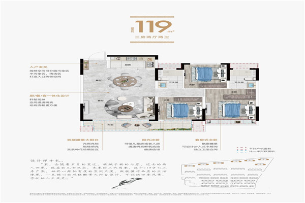 建面约119㎡ 3房2厅2卫