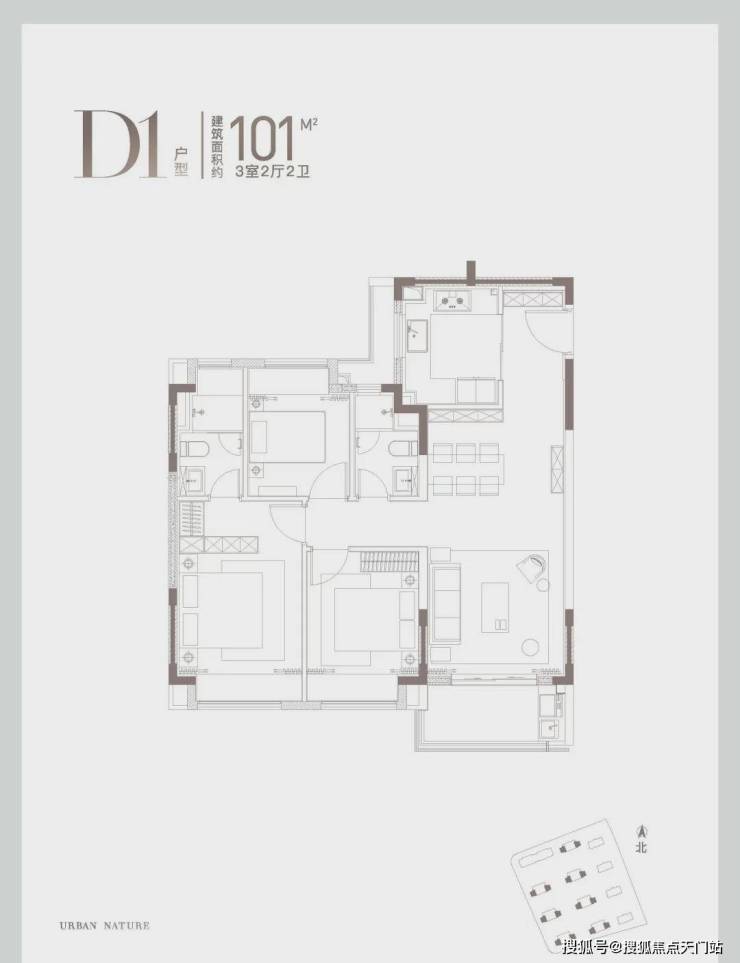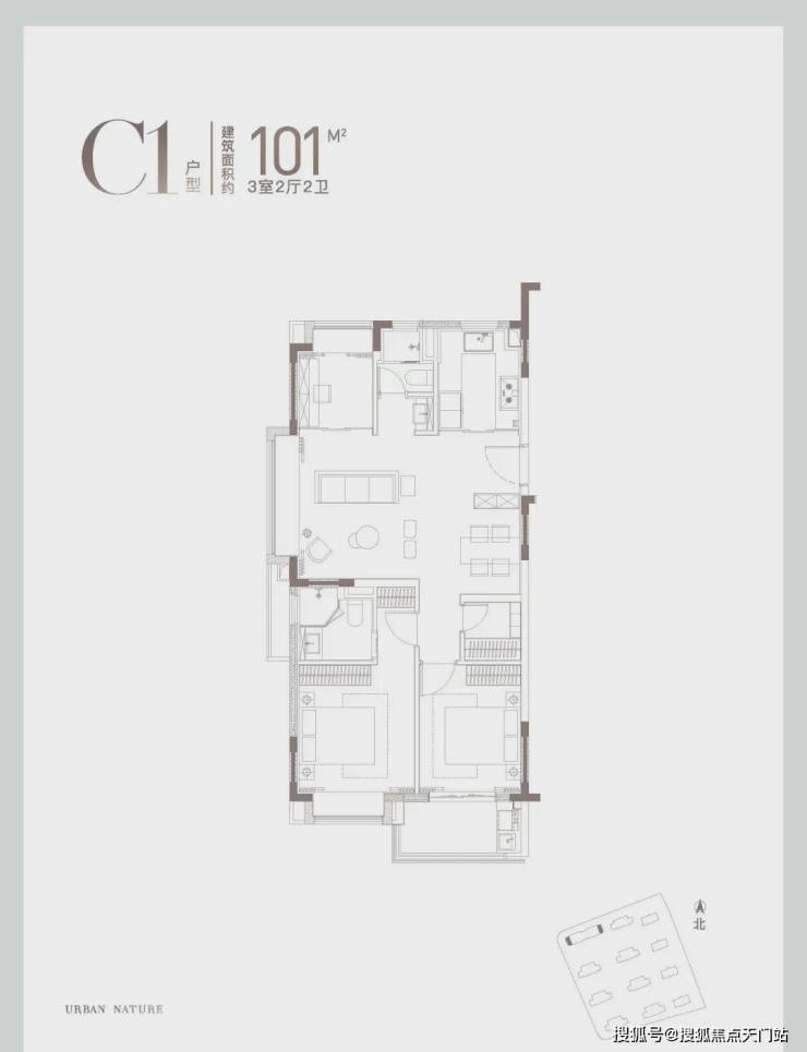 从户型设计看,建面约100、101㎡三房三开间朝南,动静分区、全卧飘窗,主卧就寝区→衣帽间→卫浴间层层递进,仪式感满满。