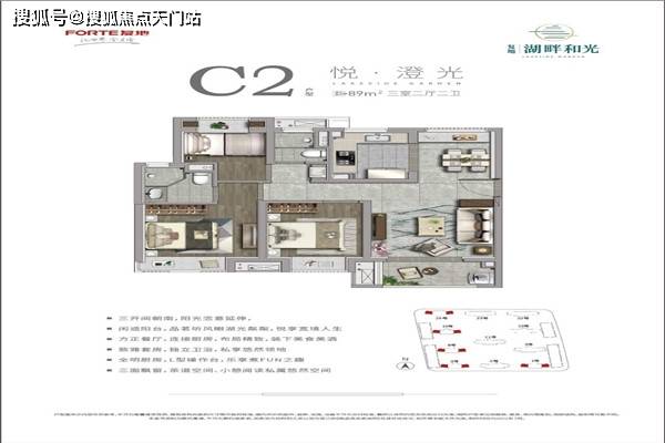 ③:建面约89㎡ (115套):三房两厅两卫