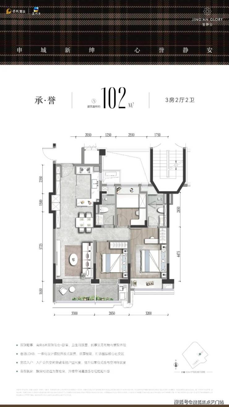 洄游式270°采光大横厅亮点满满,北向飘窗可升级为全落地窗,搭配东面270° 景观阳台,形成环幕通透格局,将苏州河景与社区绿意尽收眼底,这一“端厅式设计”在约143 ㎡面积段实属罕见;三卧室朝南的“平权采光”设计,则精准匹配了二胎或三代同堂家庭需求。