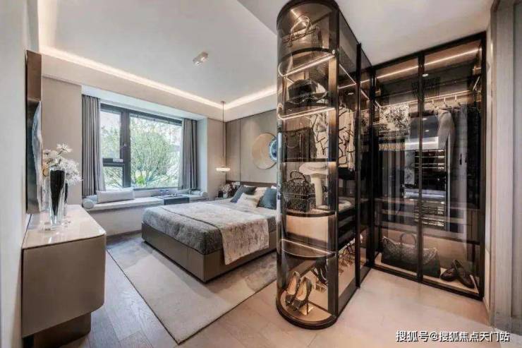 套房式主卧:主卧的面宽和进深都很充裕,为每一个生活场景预留了足够的空间。双面转角的衣帽间区域,非常实用。