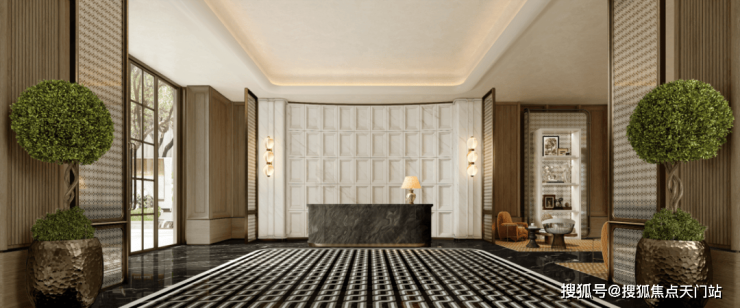 比如,挑高约6米的入户大堂、水系景观与艺术家共创作品交相辉映