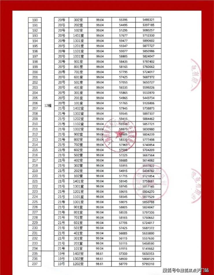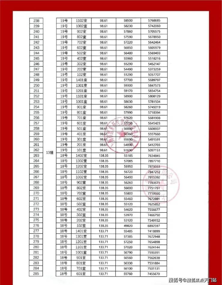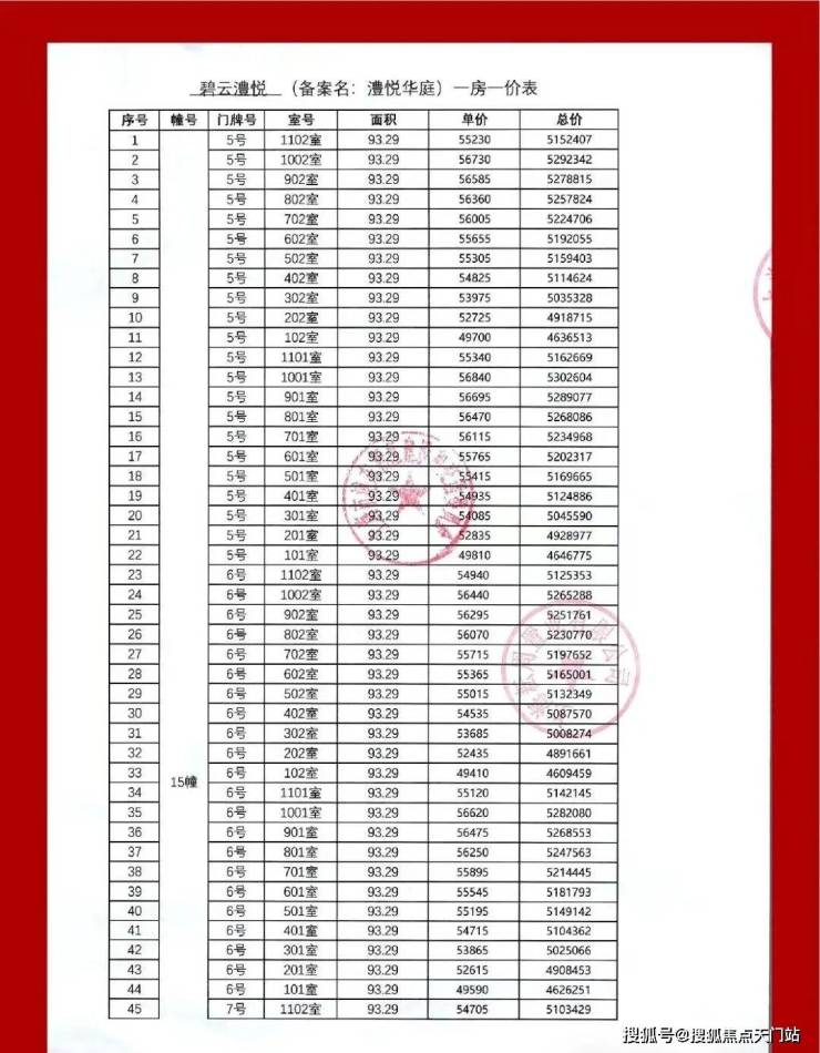 一房一价表: